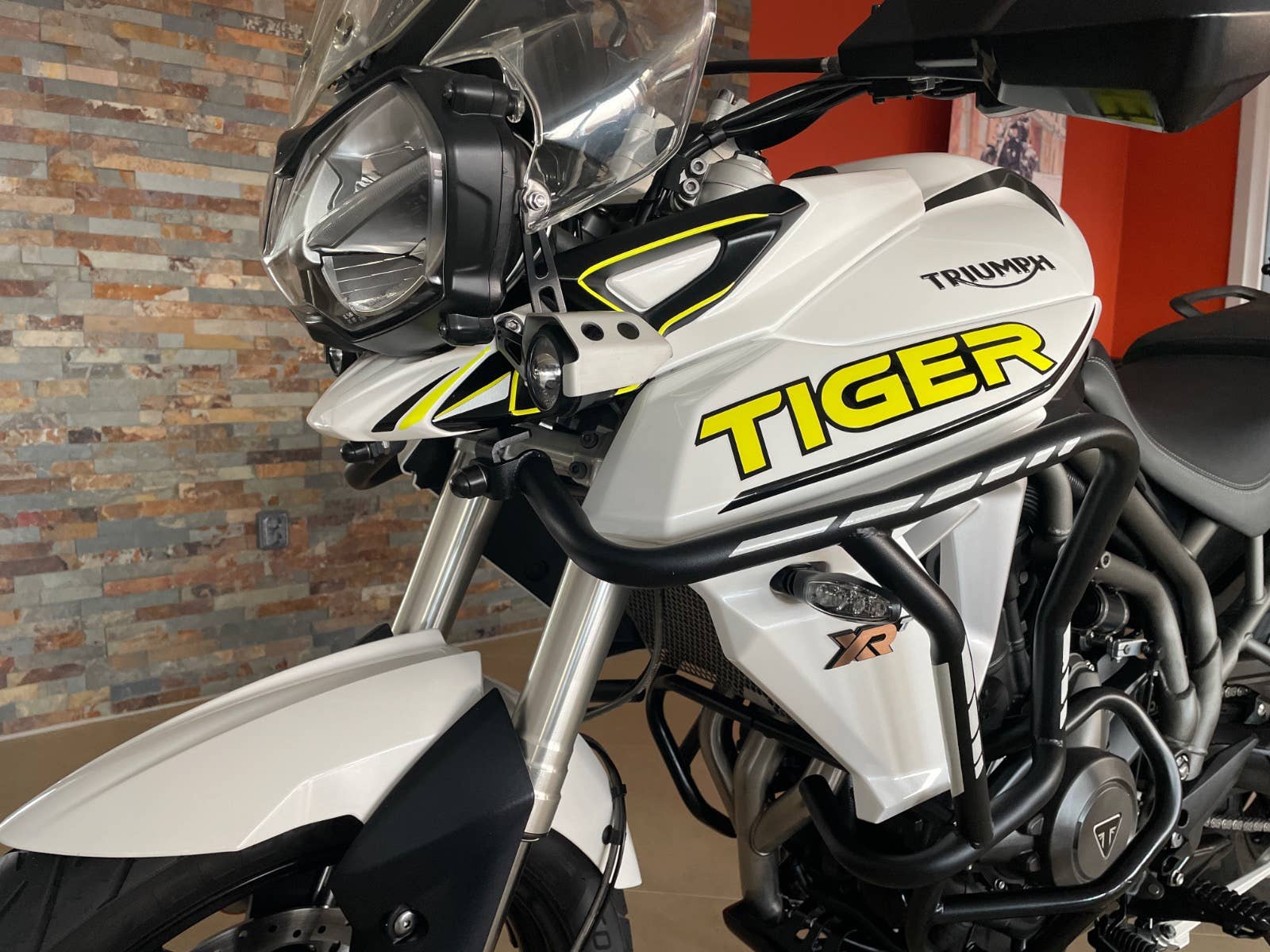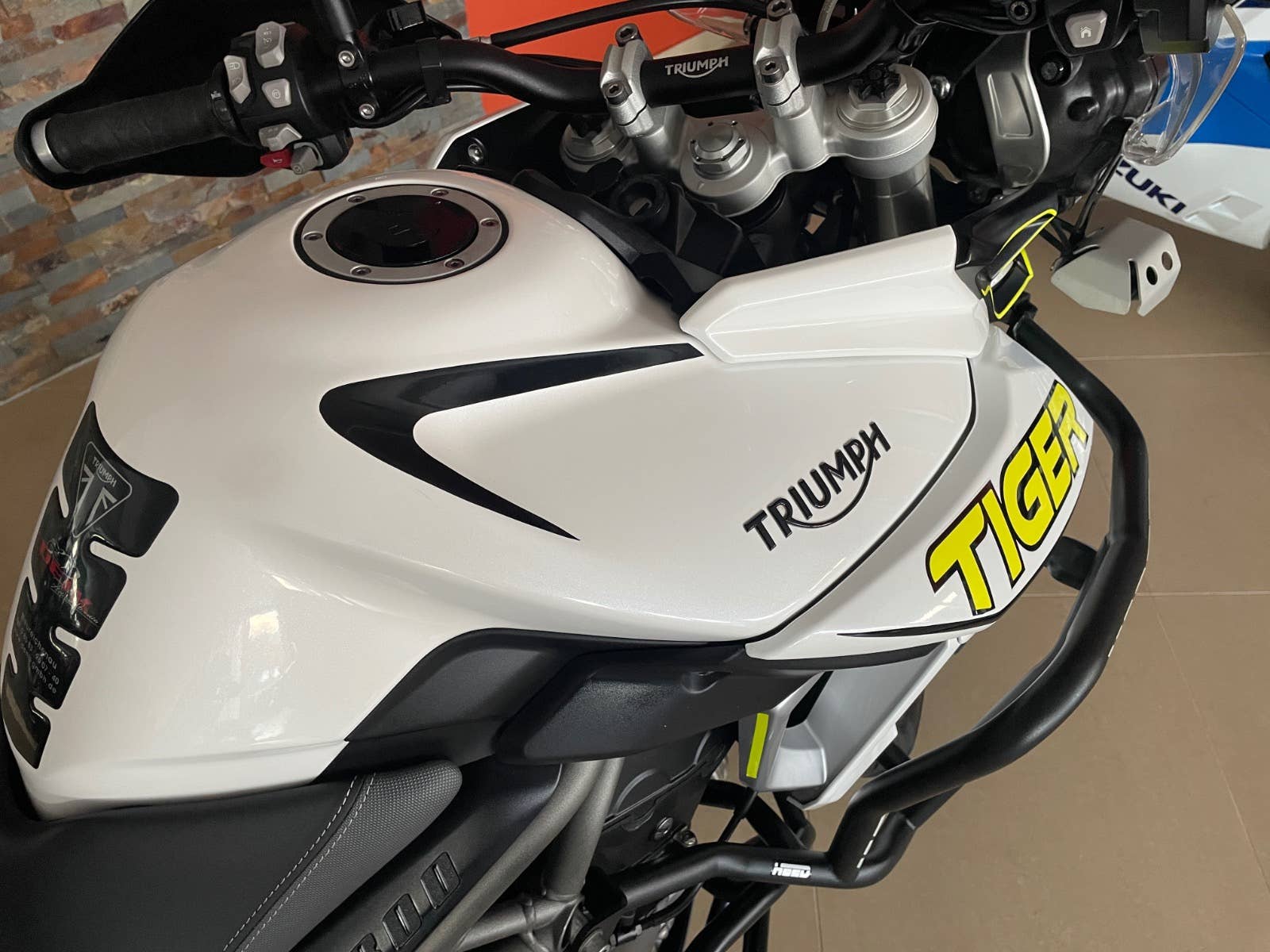 Triumph Tiger 800 XRT, r.v. 2019, 69 kW, 138t. km, dovoz Německo od 1. majitele, plná servisní historie Triumph ( servisní knížka + všechny faktury ze servisu Triumph). Všechny TÜV (STK) od nového až do současnosti, manuál, 2 klíče. Technicky a opticky v perfektním stavu! Model XRT je nejvyšší a nejluxusnější model. Původní cena 350t. Kč bez výbavy! Výbava nad rámec modelu Tiger 800 XRx